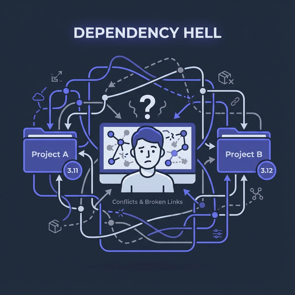 Version managers solve this by allowing multiple versions to coexist: